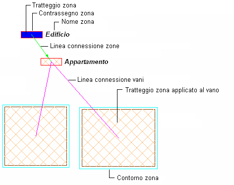- In Offset contorno zona, immettere un valore per specificare la distanza da interporre fra il contorno zona e il contorno base di eventuali vani associati.