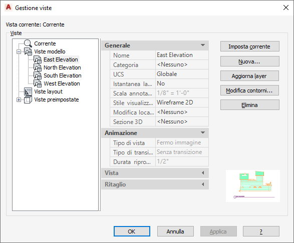 In Gestione viste la vista dello spazio modello creata è contenuta nell'elenco Viste.