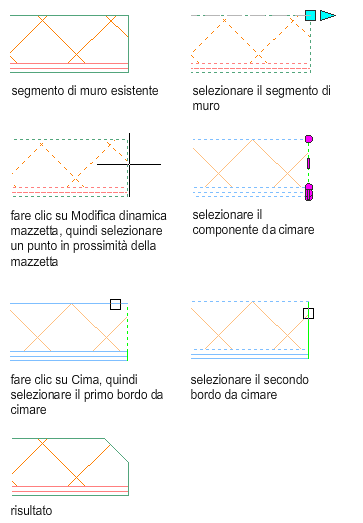 Per modificare una mazzetta mediante la cimatura dell'angolo di un componente muro, attenersi alla procedura indicata di seguito.