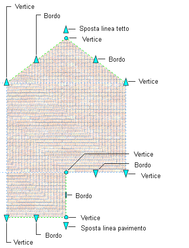 | Modificare la forma della linea del tetto o del pavimento | Selezionare il profilo, quindi servirsi dei grip Sposta linea tetto, Sposta linea pavimento, Vertice e Bordo per regolare la forma. |