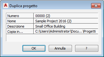 - Nella finestra di dialogo Duplica progetto, immettere un numero per il nuovo progetto.