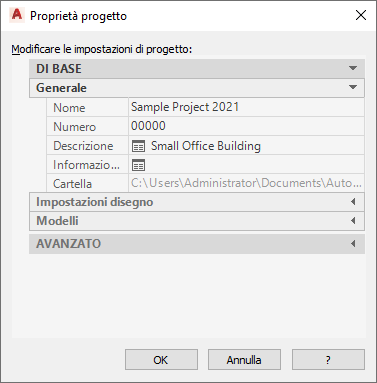 Per definire o modificare le proprietà di base del progetto, attenersi alla procedura indicata di seguito. Le proprietà di base appartengono a tre categorie: