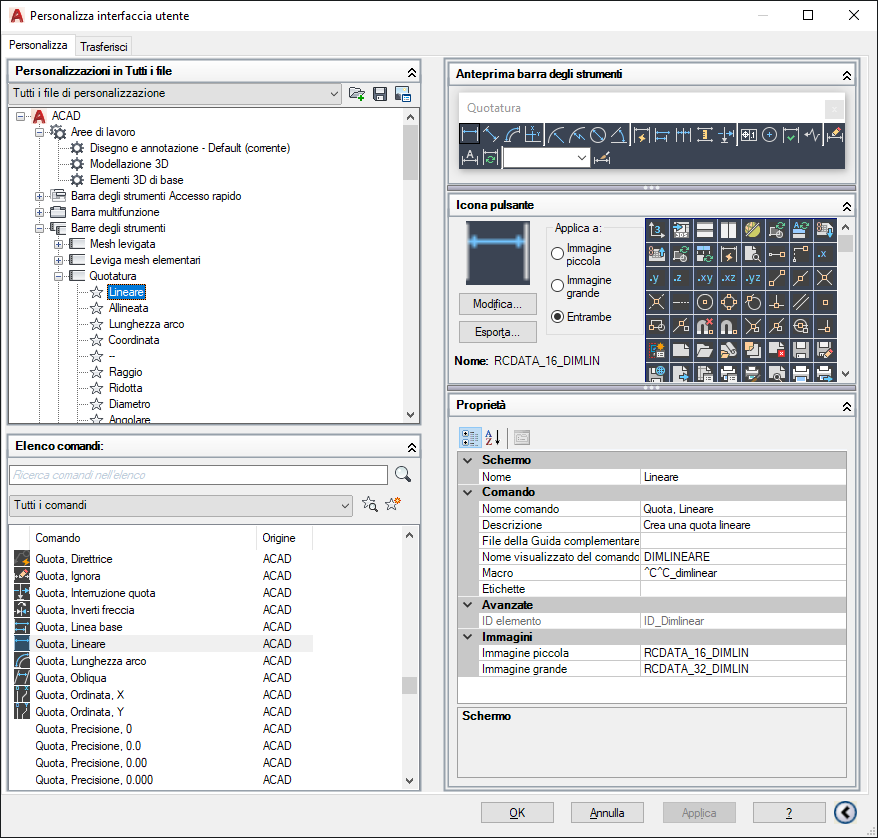 Fornisce un'interfaccia per la personalizzazione di aree di lavoro, barre degli strumenti, menu, gruppi della barra multifunzione, menu di scelta rapida e altri elementi dell'interfaccia utente.