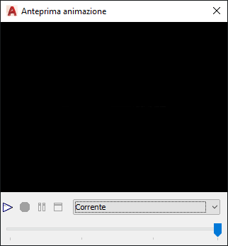 Apre la finestra di dialogo Salva con nome. È possibile salvare un'animazione in un formato file AVI, MOV, MPG o WMV per riprodurla successivamente. Dopo aver salvato l'animazione, viene rivisualizzato il disegno. Il pulsante Salva è disabilitato quando è in corso la riproduzione di un'animazione.