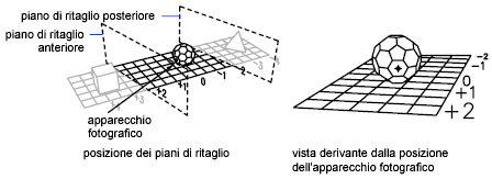 Taglia la vista, oscurando le parti del disegno poste dietro o davanti al piano di ritaglio anteriore. I piani di ritaglio anteriore e posteriore sono pareti invisibili che è possibile collocare perpendicolarmente alla linea di vista tra l'apparecchio fotografico e il punto di mira.