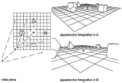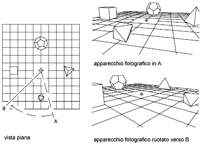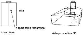 Definisce la proiezione parallela o le viste prospettiche utilizzando un apparecchio fotografico e un punto di mira.