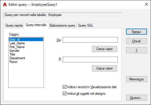 Apre la finestra di dialogo Opzioni di visualizzazione dati e di query.