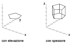 Lo spessore imposta la distanza di estrusione di un oggetto 2D in direzione positiva o negativa. Un valore positivo viene estruso lungo l'asse Z positivo, mentre un valore negativo viene estruso lungo l'asse Z negativo.