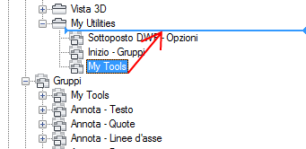 Tra i gruppi della barra multifunzione, viene visualizzato un indicatore nella posizione in cui verrà inserito il gruppo al rilascio del pulsante del dispositivo di puntamento.