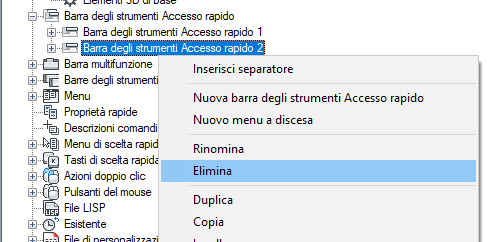 La nuova barra degli strumenti Accesso rapido, denominata Barra degli strumenti Accesso rapido 1, viene inserita in fondo al nodo Barra degli strumenti Accesso rapido.