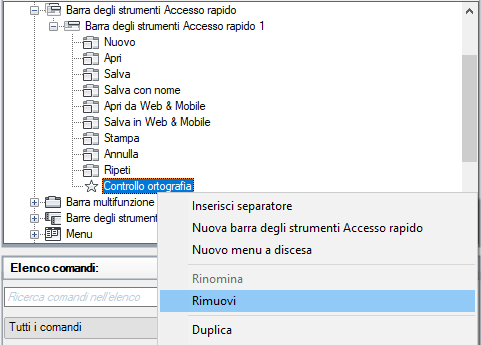 3. Fare clic con il pulsante destro del mouse sul comando o sul controllo da rimuovere e scegliere Rimuovi.