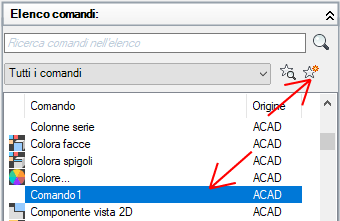 L'elenco viene filtrato in modo da visualizzare solo i comandi definiti dall'utente che sono stati aggiunti ai file di personalizzazione caricati.