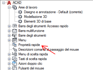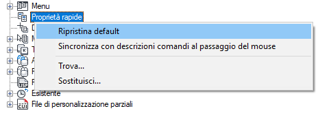 - Nella scheda Personalizza, nel riquadro Personalizzazioni in <nome file>, fare clic con il pulsante destro del mouse su Proprietà rapide.