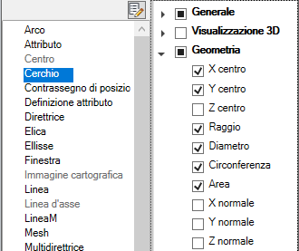 - Nel riquadro Proprietà, selezionare le proprietà che si desidera visualizzare per un determinato tipo di oggetto nella tavolozza Proprietà rapide.