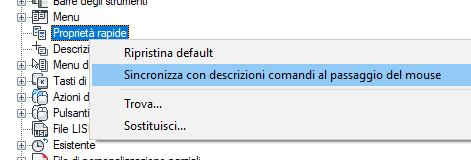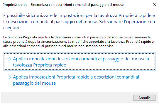 Sincronizzazione delle proprietà rapide con le descrizioni comandi al passaggio del mouse