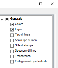 - Nel riquadro Proprietà, fare clic sulle caselle di controllo accanto alle proprietà generali che si desidera visualizzare nella tavolozza Proprietà rapide per tutti i tipi di oggetto.