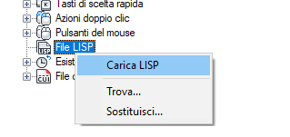 Nella scheda Personalizza, nel riquadro Personalizzazioni in <nome file>, fare clic con il pulsante destro del mouse sul nodo File LISP. Fare clic su Carica LISP.