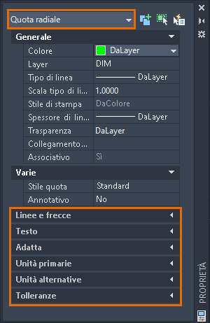 Ogni oggetto AutoCAD dispone di un proprio gruppo di proprietà. Le proprietà generali, quali colore, layer, tipo di linea, scala del tipo di linea, spessore di linea e altre, sono comuni alla maggior parte degli oggetti. Alcuni oggetti hanno proprietà specifiche per se stessi.