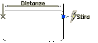 Nell'esempio che segue viene mostrato come l'evidenziazione della dipendenza crea un effetto alone per il parametro (etichettato Distanza) e l'azione (etichettata Stiramento) associata quando si seleziona il grip personalizzato nell'Editor blocchi.
