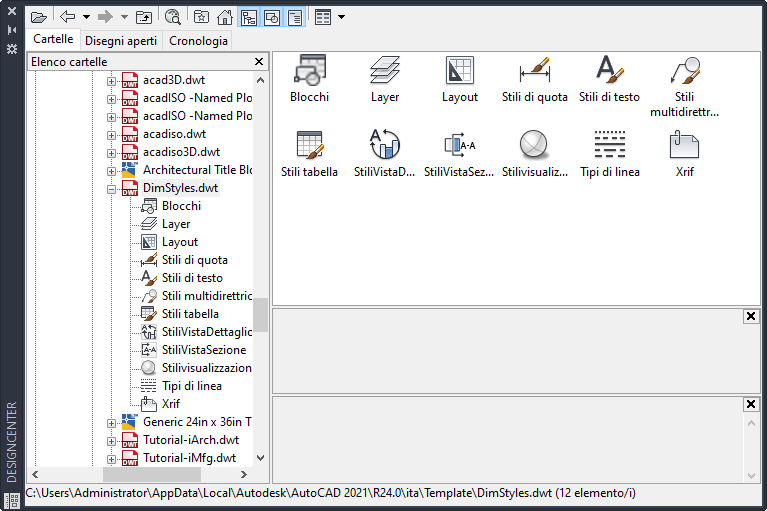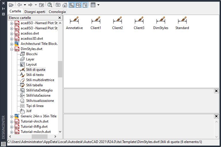 Nota: Gli stili di quota già presenti nel disegno corrente non vengono importati o aggiornati.