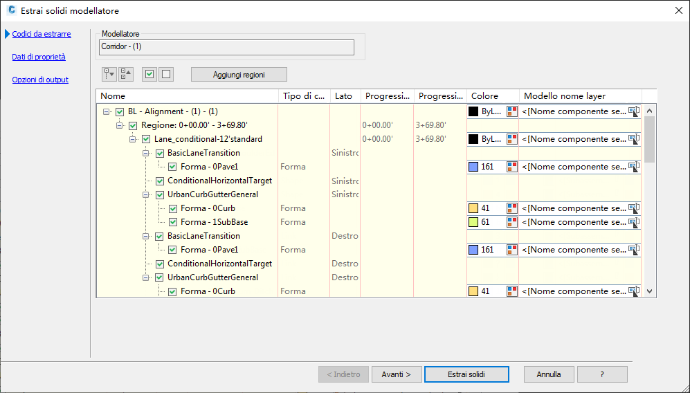 5. Nella procedura guidata Crea solidi da modellatore, nella pagina Codici da estrarre, impostare le seguenti opzioni: