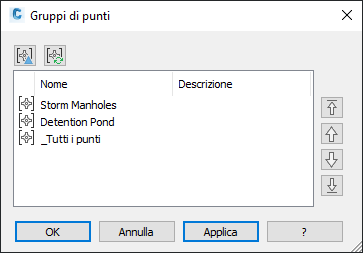 L'ordine di visualizzazione dei gruppi di punti di una Carta determina l'ordine in cui i gruppi di punti vengono tracciati quando viene aperta una Carta o vengono rigenerati gli elementi grafici. Il primo gruppo di punti (in cima all'elenco) dell'elenco è l'ultimo ad essere tracciato.