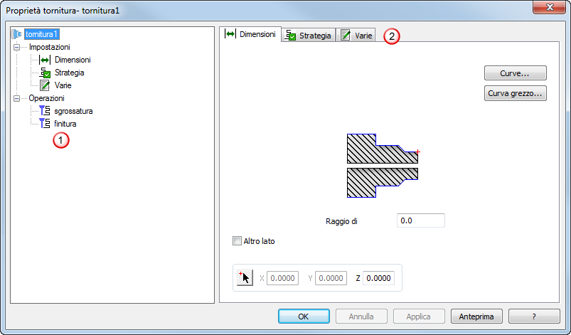 La vista della scheda feature di tornitura elenca le diverse operazioni per la feature: