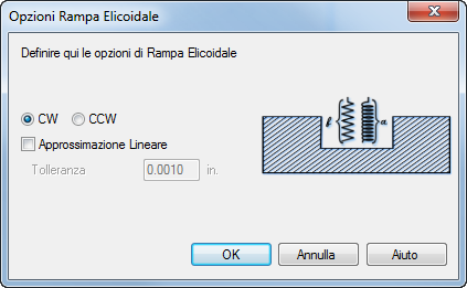 Seleziona la direzione per la rampa elicoidale tra CW (senso orario) e CCW (senso antiorario).
