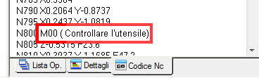 Per esempio, si può inserire uno stop condizionale M00 in un punto particolare per poter controllare l'utensile.