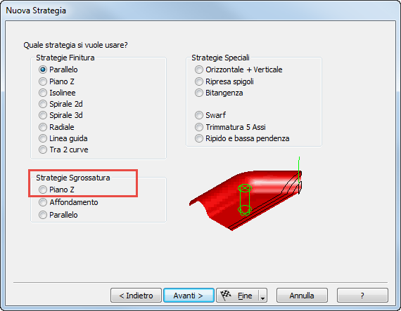 - Sotto a Strategie Sgrossatura, selezionare Livello Z, poi fare clic su Avanti.