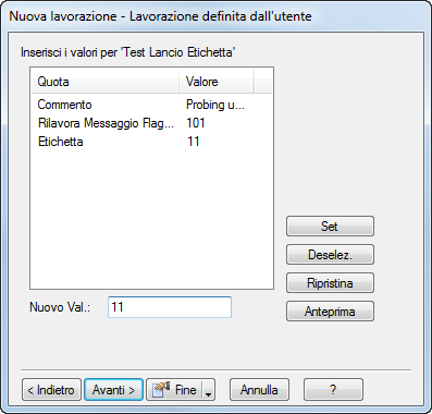 Il codice NC per questa feature Test Lancio Etichetta è: