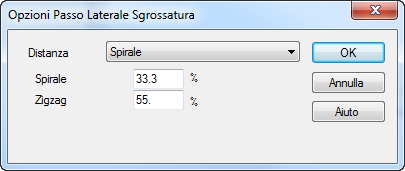 Fare clic sul pulsante Opzioni passo laterale sulla scheda Passo laterale per aprire la finestra di dialogo Opzioni passo laterale sgrossatura: