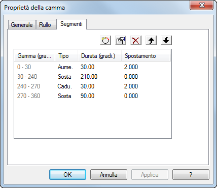 Le camme cilindriche (o a barile) sono specificate come si farebbe con una camma normale. Vedere Camme per maggiori informazioni sulle camme a moto alternativo. Per camme semplici, aumento e caduta sono distanze radiali. Sulle camme cilindriche gli spostamenti di aumento e caduta sono lungo l'asse di avvolgimento.
