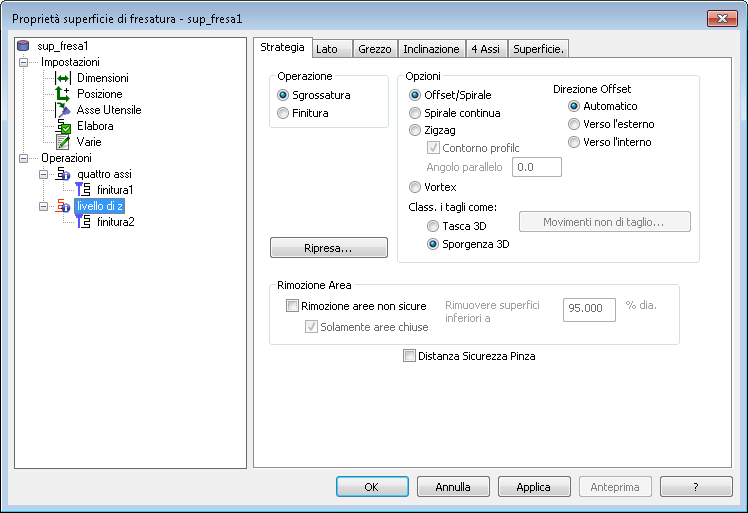 Ripresa — Fare clic su questo pulsante per aprire la finestra di dialogo Opzioni ripresa sgrossatura livelli-Z.
