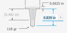 - Dimensione specifica la dimensione di filettatura. Selezionare da un elenco di dimensioni nominali per il tipo di filettatura selezionato.