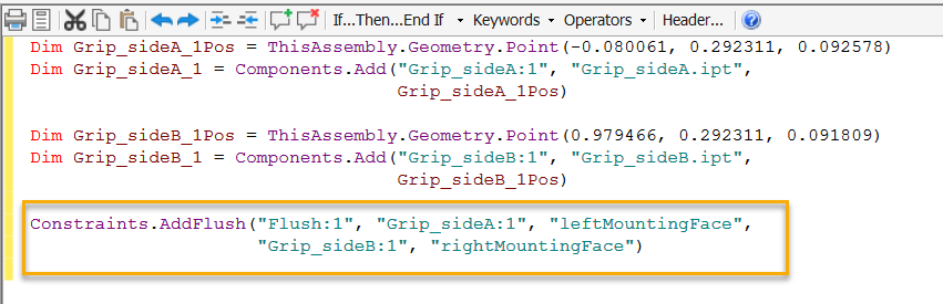Assegnare innanzitutto un nome ad una faccia o uno spigolo, quindi creare una regola che aggiunge vincoli direttamente a facce o spigoli con tali nomi.
