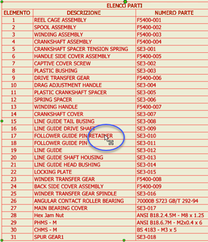 È possibile dividere una parte, un foro, una revisione o una tabella generale e spostare la sezione divisa in una nuova posizione o in un nuovo foglio.