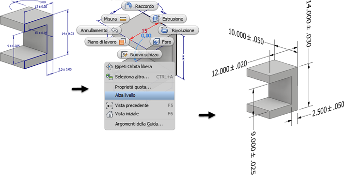 Se la quota del modello include informazioni sulla tolleranza, è inclusa nella quota con livello innalzato.