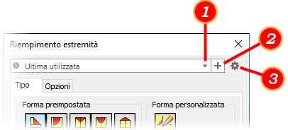 La preimpostazione Ultimo utilizzo è composta dai parametri utilizzati per la lavorazione posizionata più di recente di tale tipo. La preimpostazione Ultimo utilizzo viene visualizzata quando non è stata salvata alcuna preimpostazione per la nuova lavorazione creata. È possibile utilizzare la preimpostazione Ultimo utilizzo così com'è o modificarne i valori. È possibile salvare in qualsiasi momento la preimpostazione modificata in una nuova preimpostazione facendo clic su