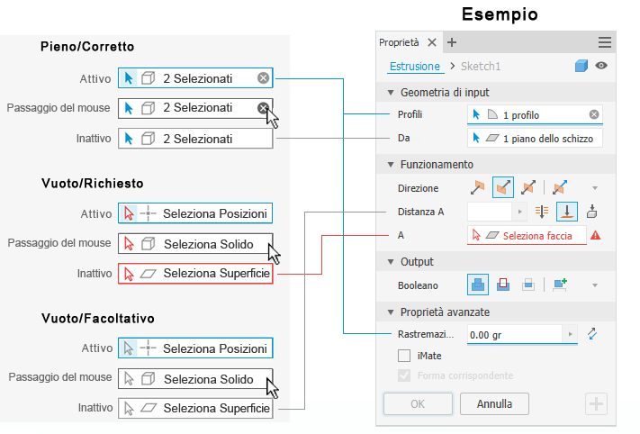 nella barra multifunzione per passare dalla modifica dello schizzo alla modifica della lavorazione. L'icona consente di visualizzare la lavorazione attiva in fase di creazione o modifica, ad esempio Estrusione, Rivoluzione e così via.