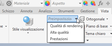 Quando si apre un modello inModalità rapida o si lavora in questa modalità, la preimpostazione Qualità di rendering non è disponibile. Infatti, i componenti non sono completamente caricati e lo stile di visualizzazione Realistico non è disponibile.