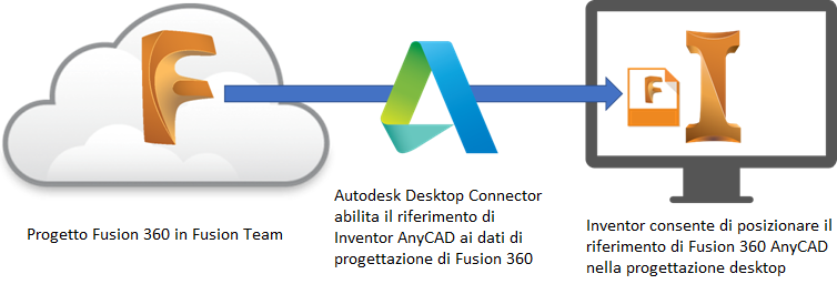 Per poter condividere dati tra Inventor, un'applicazione desktop e Fusion 360, una piattaforma basata su cloud, ci sono alcuni requisiti da rispettare: