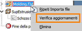Quando si apre un documento di Inventor che contiene un riferimento .fusiondesign, Inventor rileva se è disponibile un aggiornamento: