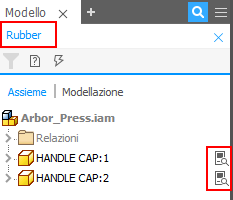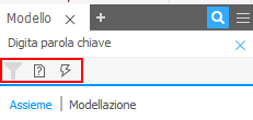 - Consente di attivare/disattivare la ricerca e filtrare (operazione di filtro non disponibile in Inventor LT).