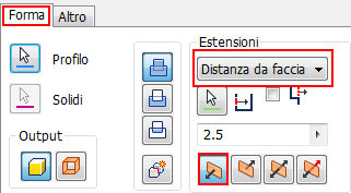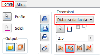 Con Distanza da faccia e Direzione 1 o Direzione 2 selezionati nella scheda Forma, utilizzare le opzioni della scheda Altro per ottenere risultati diversi.