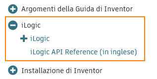 Funzioni e argomenti della Guida di iLogic sono ora disponibili dal nodo Guida in linea di riferimento dell'API iLogic. Il contenuto di questa Guida è solo in lingua inglese.