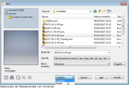 Con Inventor 2017.4, l'opzione AnyCAD è stata estesa per consentire l'utilizzo dei file di Inventor 2018 nei progetti di Inventor 2017. Ciò significa che ora è possibile lavorare con altri utenti che utilizzano versioni di Inventor precedenti o successive alla versione che si sta utilizzando. Per facilitare l'identificazione della versione di un file di Inventor, ora nella finestra di dialogo Apri viene visualizzata la versione di Inventor in cui il file è stato salvato l'ultima volta.
