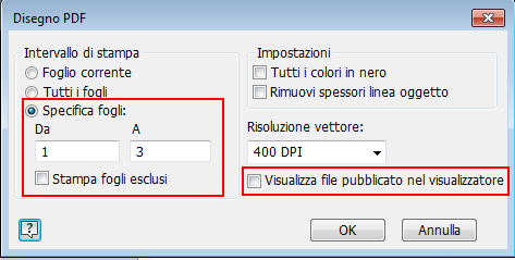 - La nuova opzione, Visualizza file pubblicato in visualizzatore, se selezionata, visualizza i fogli in Adobe Acrobat Reader dopo la selezione di Salva.