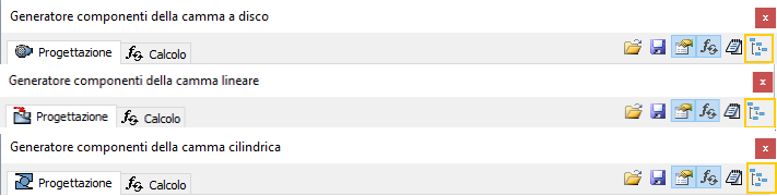 Per ulteriori informazioni sulla creazione dei componenti Camma, vedere Progettazione di camme a disco, Progettazione di camme lineari e Progettazione di camme cilindriche.