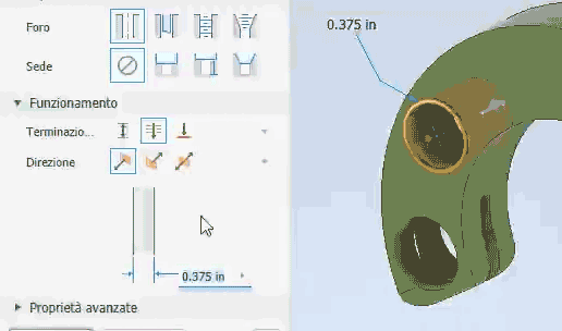 Durante il posizionamento di fori, è possibile controllare la creazione dei punti centrali attivando/disattivando l'opzione Consenti creazione punto centrale